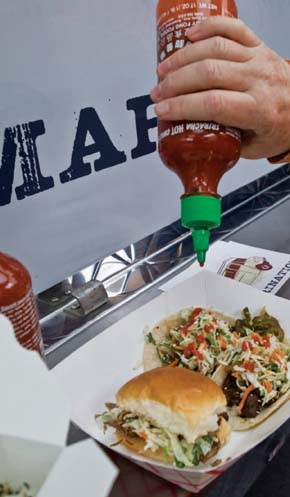 Kamala Saxton, a principal in Marination Mobile, loves the intimacy of street food. “If I’m in a restaurant, I don’t always get to talk to the owner or meet the chef,” she told me. “On a truck like mine, you have no choice.