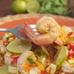 - นำกุ้งที่ลวกไว้มาเรียงบนผักและราดด้วยน้ำยำที่เตรียมไว้