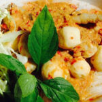 - ทำน้ำยาโดยการปั่นเครื่องแกงทั้งหมด ตามด้วยทางกะทิปั่นด้วยกันให้ละเอียด เทลงใส่หม้อใส่หัวกะทิที่เหลือตามด้วยเนื้อปลา คนให้เข้ากันตั้งไฟปานกลาง เมื่อร้อนปรุงรสตามความชอบปิดไฟใส่ใบมะกรูด จัดขนมจีนใส่จานตักน้ำยากะทิสดราด เสิร์ฟพร้อมตะกร้าผักเหนาะ ไข่ต้ม