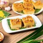 - ทาไข่แดงบนหน้าขนมหม้อแกงให้ทั่ว นำไปอบด้วยไฟบน อุณหภูมิ 160 องศาเซลเซียส 5 นาที จากนั้นพักไว้ให้เย็น