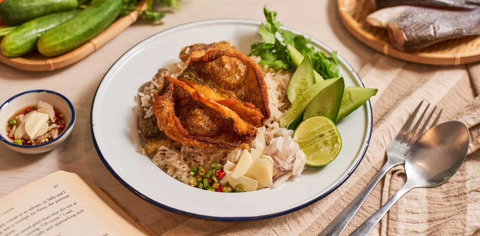 - จัดเสิร์ฟโดยวางปลาสลิดทอดกรอบไว้ด้านบน เคียงด้วยมะนาว หอมแดงซอย กระเทียมซอย พริกขี้หนูซอย ใบผักชีและแตงกวา