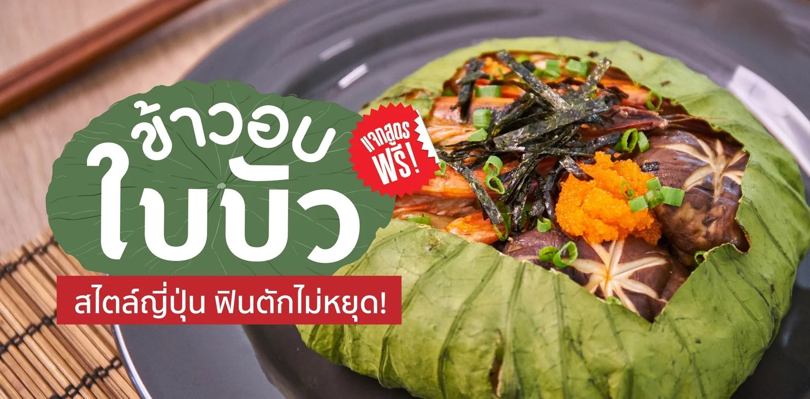 – ตกแต่ง “ข้าวอบใบบัว” ด้วยการโรยต้นหอม สาหร่าย และไข่กุ้ง เท่านี้ก็พร้อมเสิร์ฟแล้วจ้า อ่านต่อได้ที่