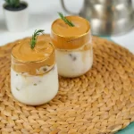 - เทนมสดใส่แก้วที่มีน้ำแข็งไว้ จากนั้นนำครีมกาแฟที่เราตีไว้มาใส่ไว้ด้านบน ตกแต่งด้วยกิ่งโรสแมรีให้สวยงาม