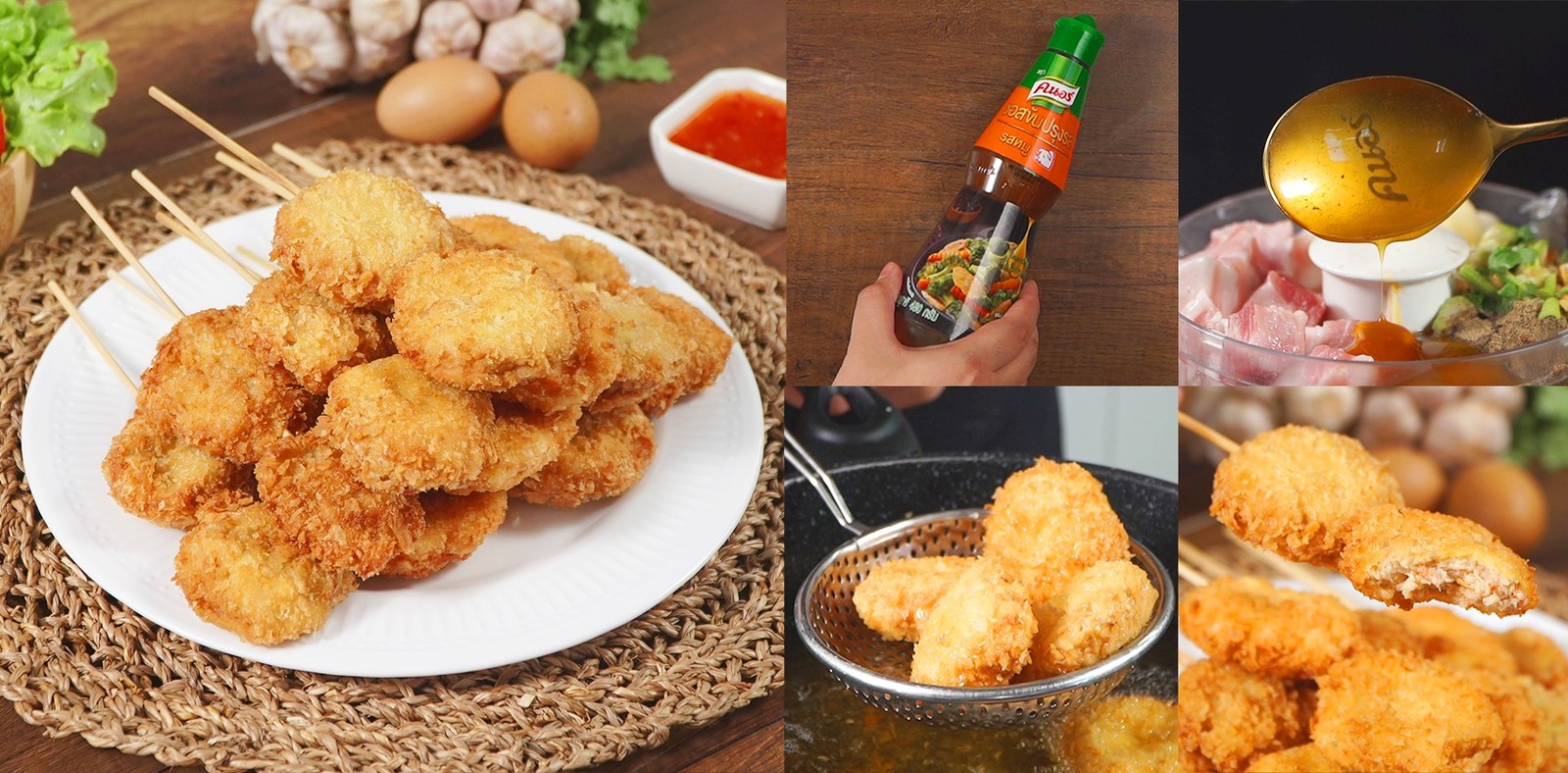 - นำทอดมันกุ้งกรอบที่สะเด็ดน้ำมันแล้วมาเสียบไม้ จัดเรียงใส่จานเสิร์ฟคู่กับน้ำจิ้มไก่ เพียงเท่านี้ “ทอดมันกุ้งกรอบ” ของเราก็พร้อมให้ทุกคนลิ้มลองแล้วค่า!