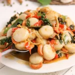 - ตักผัดฉ่าหอยเชลล์ใส่ลงในจาน อู้ยย เท่านี้ก็พร้อมฟินแล้วล่ะจ้า ><