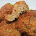 - นำกระทะตั้งไฟกลาง ใส่น้ำมัน พอร้อนตักส่วนผสมข้อ 2 ประมาณ 1 ช้อนโต๊ะ ปั้นให้กลม กดให้แบน ใส่ลงในกระทะ ทอดให้สุก